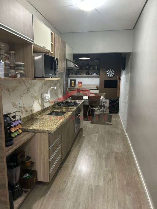 Fica no imóvel a cozinha, espaço gourmet e banheiro com mobília planejada.