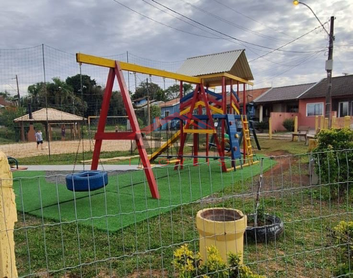 Condomínio é composto por quadra múltipla de areia, playground e salão de festas.